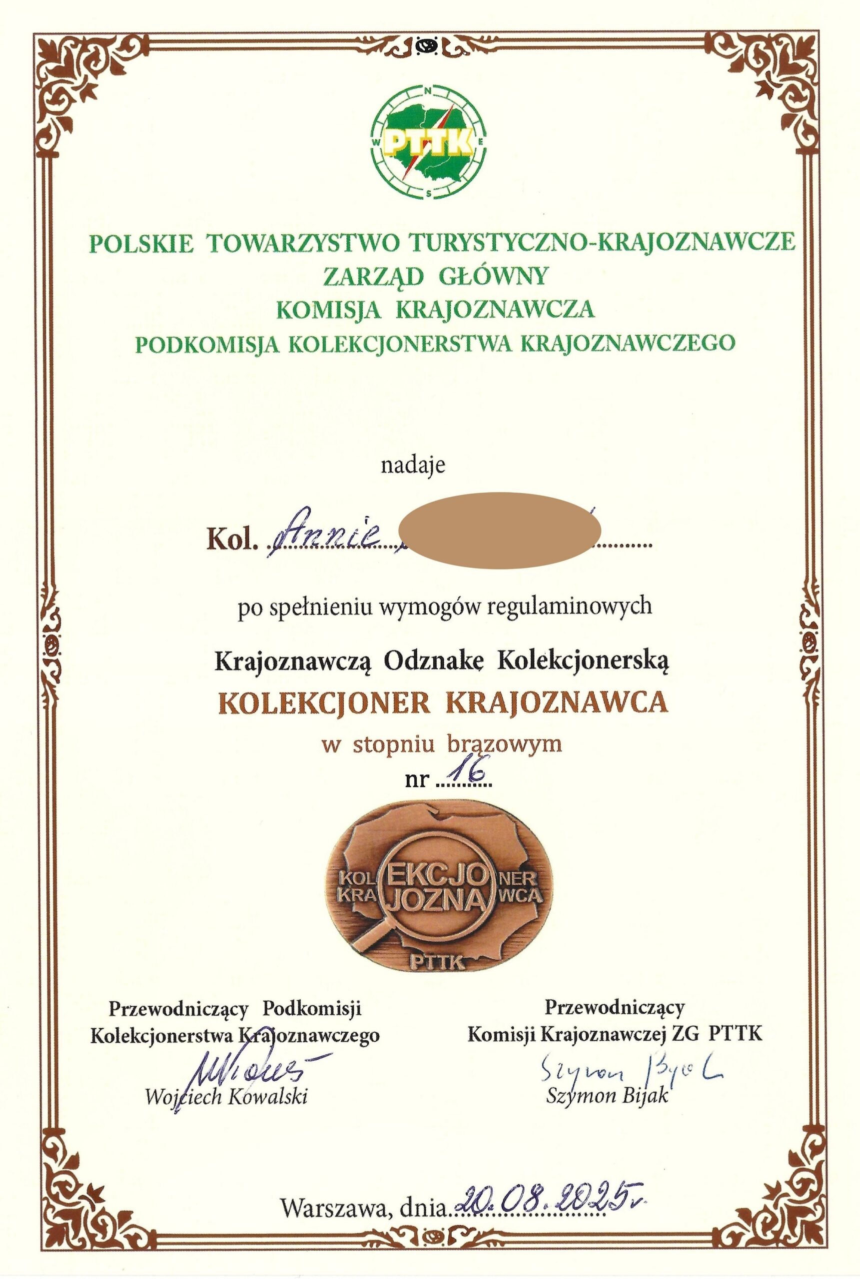 I received the PTTK “Kolekcjoner Krajoznawca” award from the Polish Tourist and Sightseeing Society for presenting a collection of 3D postcards.